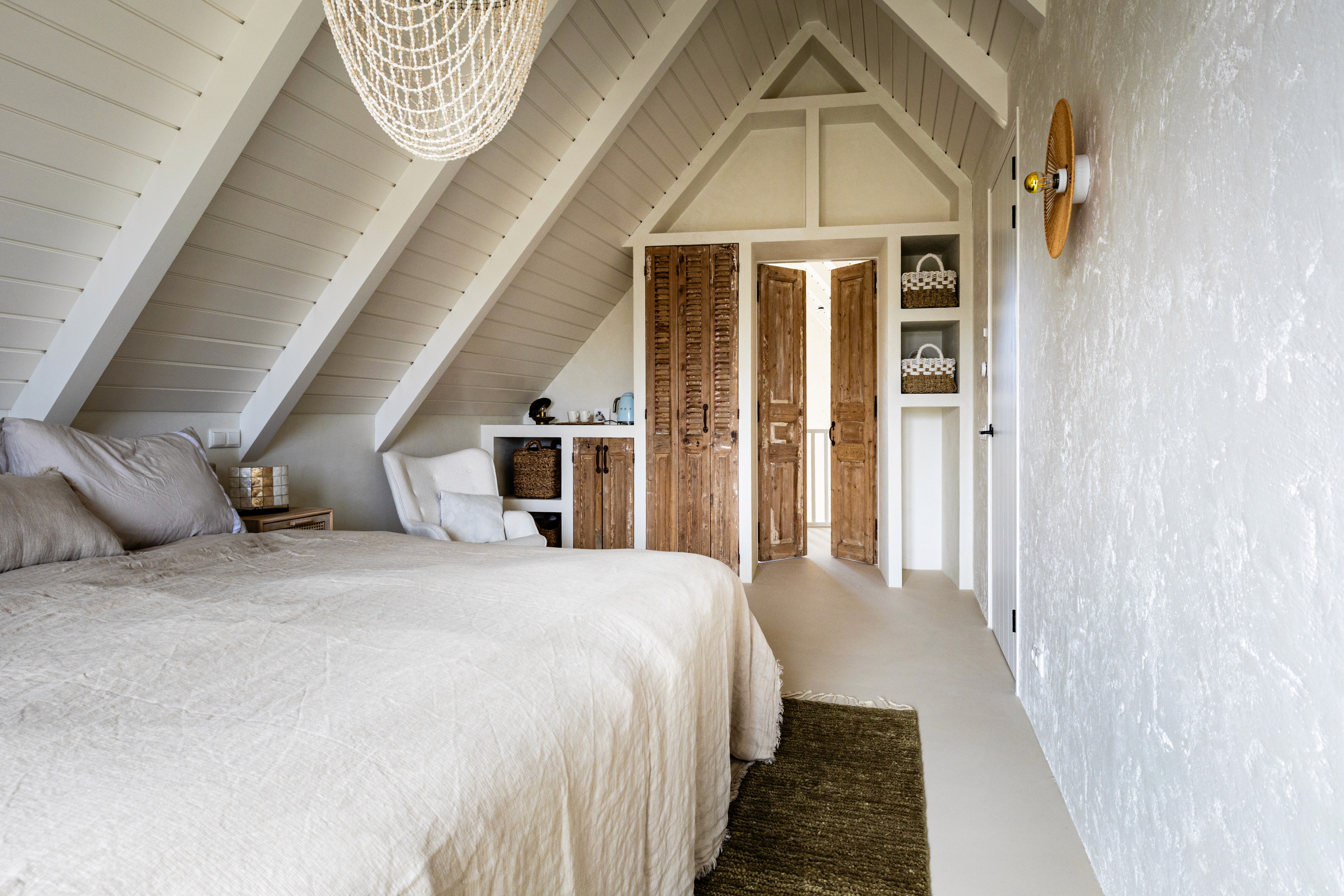 In vakantiehuis Het Egeltje realiseerden we een maatwerkinterieur in Ibiza-stijl, waarin een op maat gemaakt stapelbed en geïntegreerde kasten één rustig geheel vormen. Door het gebruik van natuurlijke materialen, zachte tinten en oude, karaktervolle elementen ontstaat een warme en ontspannen sfeer. Het resultaat is een sfeervol, functionele en tijdloze interieur waarin het ontspannen aanvoelt.